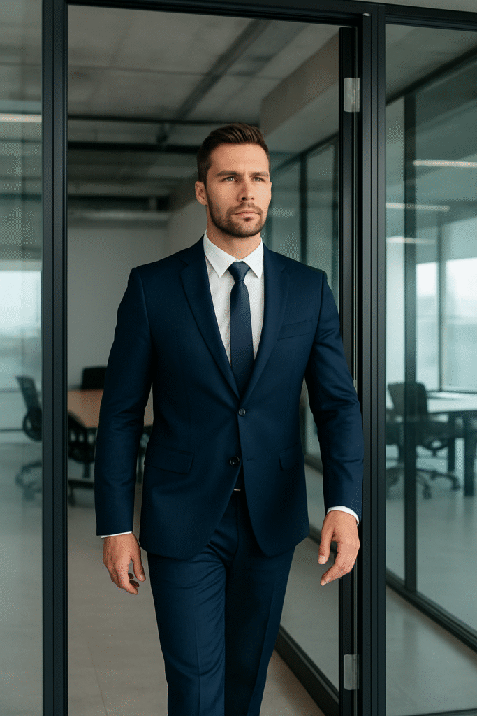 [Imagem sugerida: Homem confiante entrando em uma sala, com postura firme]
